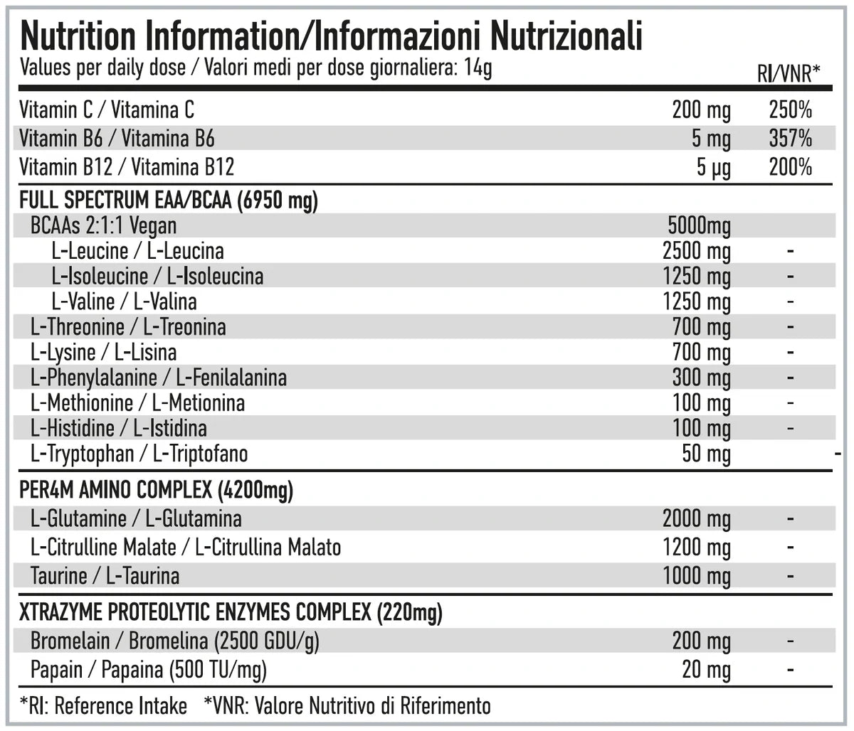 Amino XTRA delivers a full spectrum essential amino blend including 5gms of fermented BCAAs in every serving, and is boosted with the unique addition of Vegan proteolytic enzymes and Glutamine to support a healthy gut for improved amino digestion and nutrient absorption
